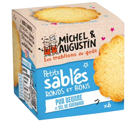 Liste des ingrédients : Farine française de blé, beurre 26,5 %, sucre roux de canne, jaune d’œufs et œuf entier de poules élevées en plein air, Sel de Guérande 1 %.